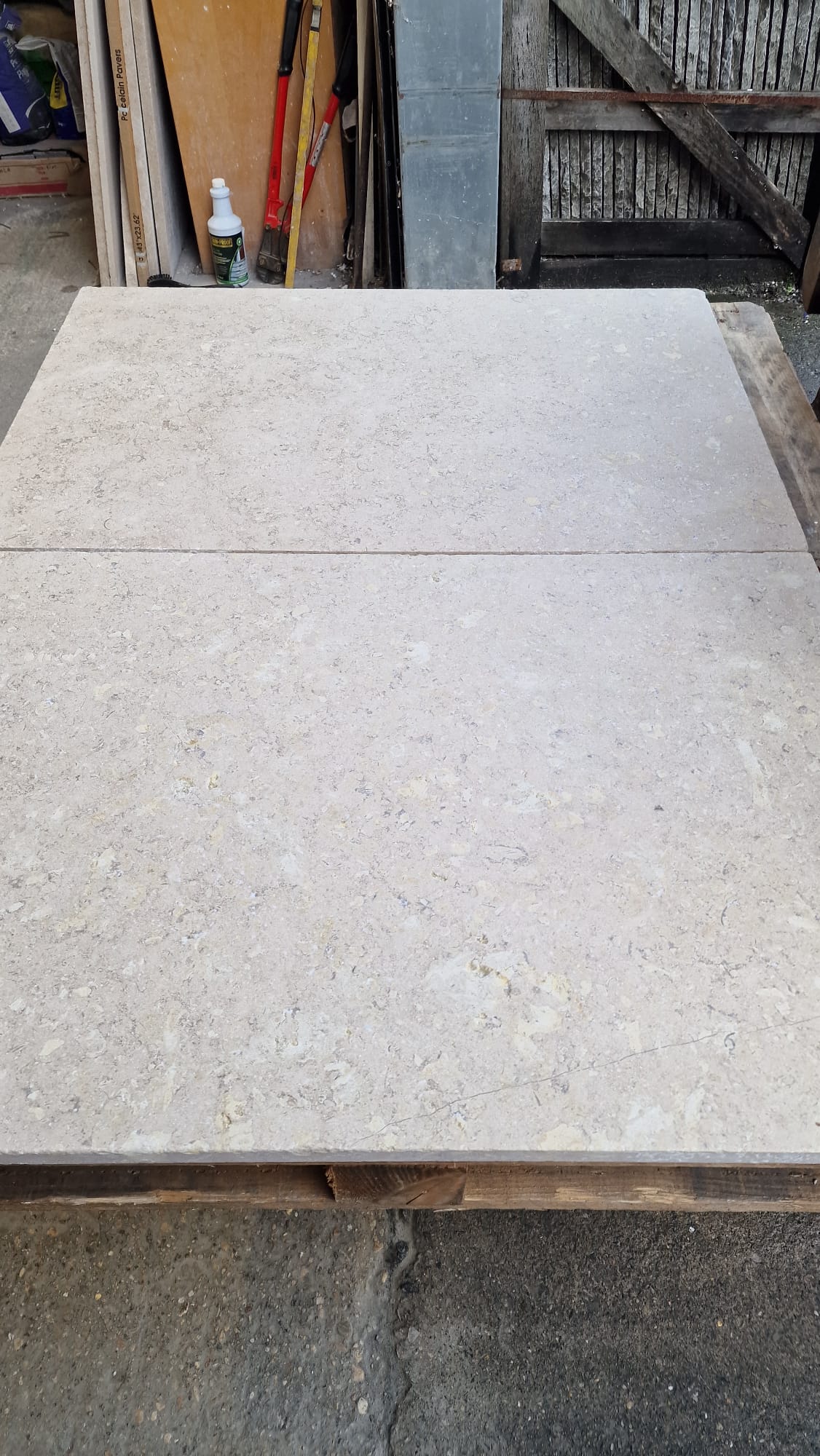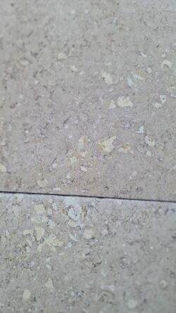 Greyish colour with a natural yellowish limestone pockets, looks as its filled but its not also has some pits.